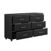 Home > Contemporary Design Black Dresser 1pc 6x Drawers Faux Leather Upholstery Plywood Engineered Wood