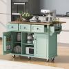 Kitchen Cart with Rubber wood Drop-Leaf Countertop ,Cabinet door internal storage racks
