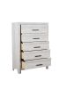 5-Drawer ChestThis 5-Drawer Chest boasts clean lines and a modern design, perfect for those who appreciate simplicity. It offers functionality with its five spacious drawers and effortlessly combines style with ample storage. This versatile addition complements various bedroom decors while maintaining a contemporary look.