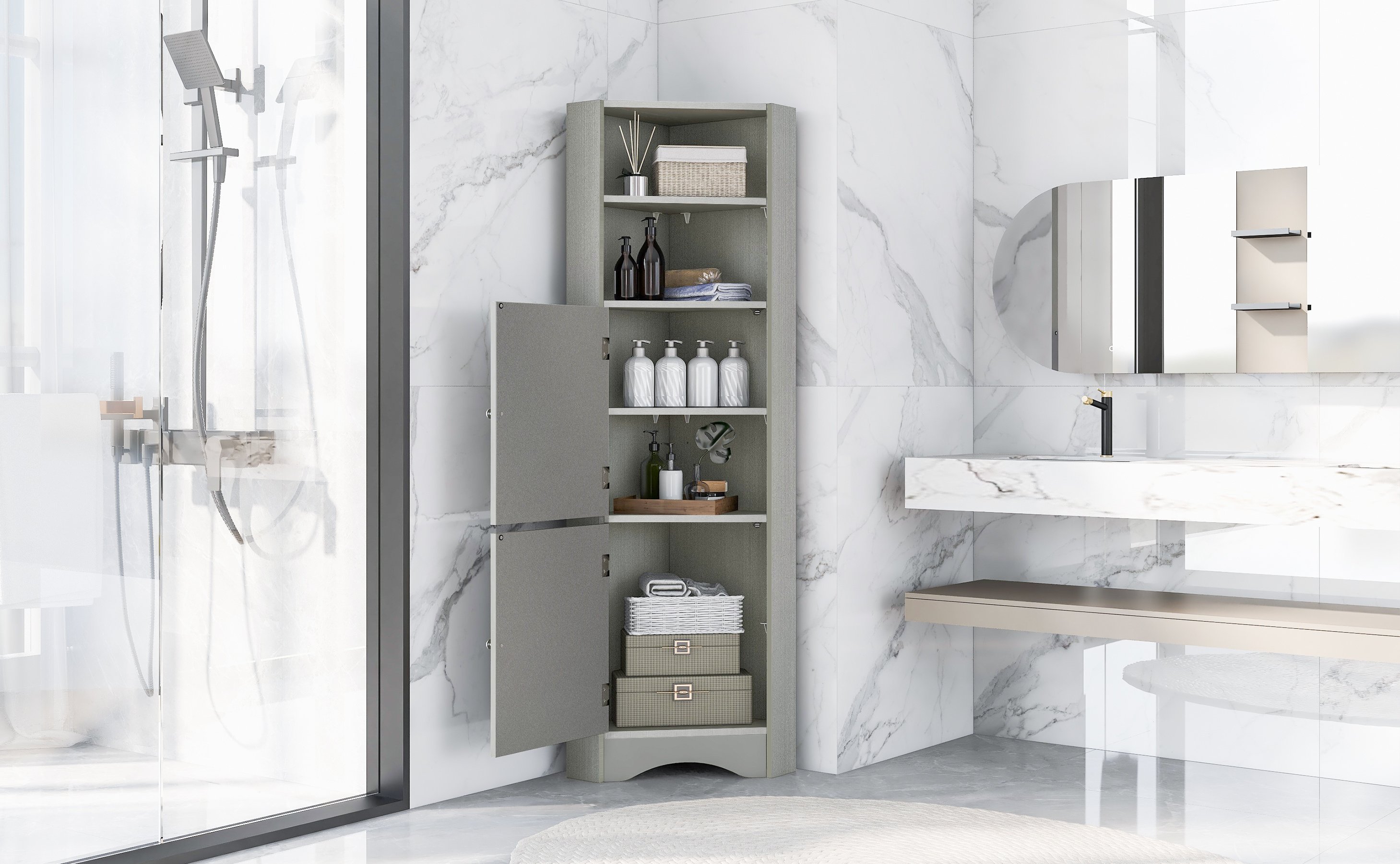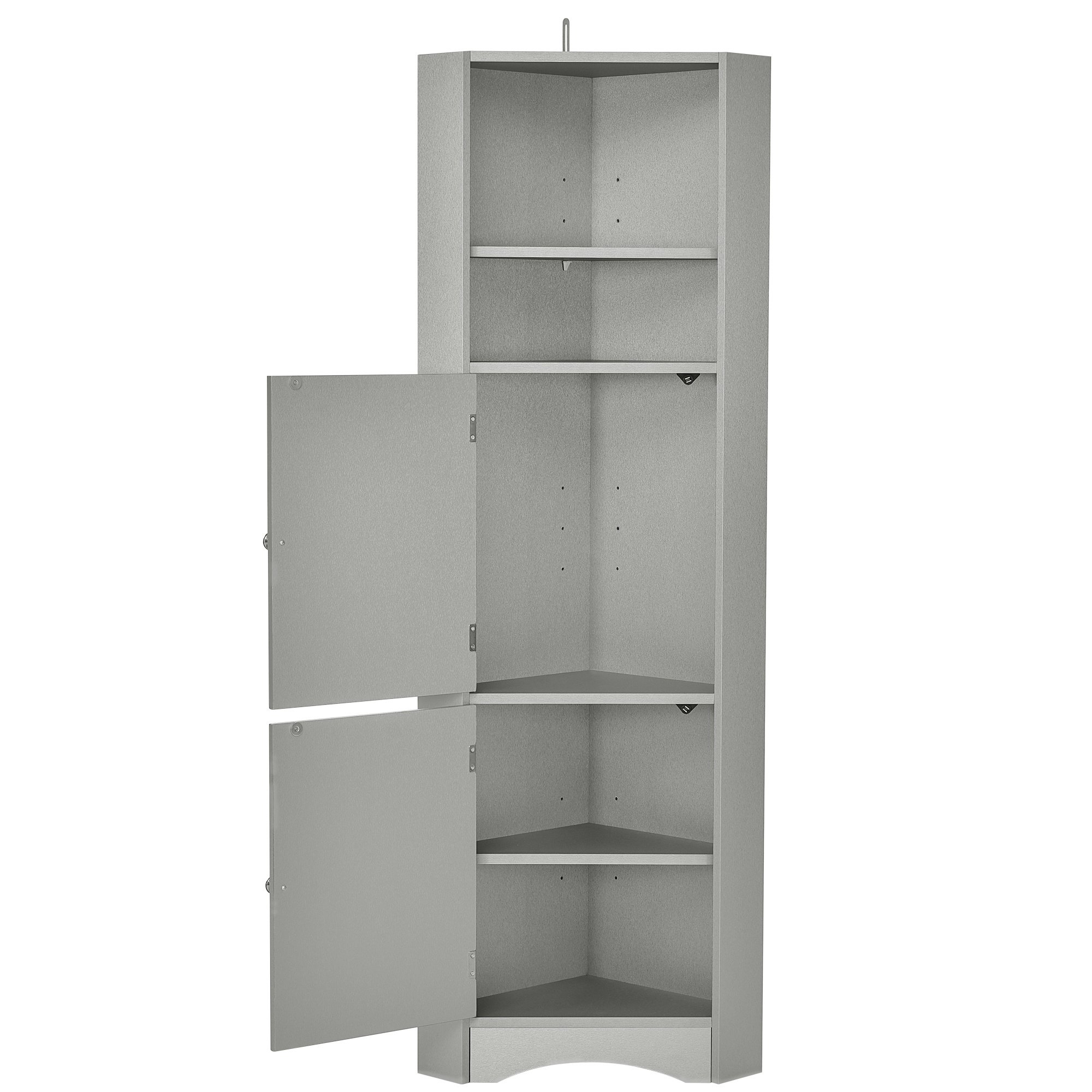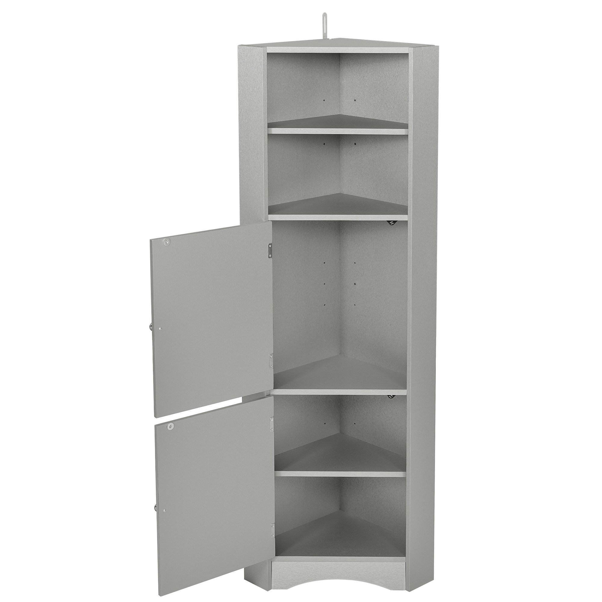 [Adjustable Shelves]: This corner cabinet contains two movable shelves that allows you to install it in the up; middle or down part of the cabinet to divide the storage space. What's more; each shelf can be adjusted to different heights according to the pre-drilled holes. It totally satisfies home storage needs.
